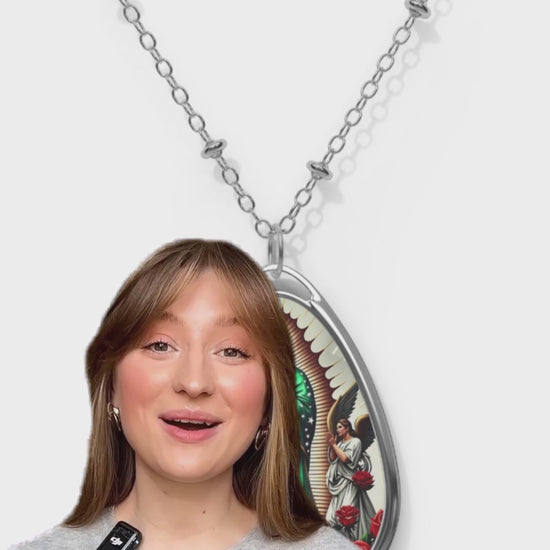 Carry a symbol of faith, love, and protection wherever you go with this stunning Oval Necklace inspired by the Virgin of Guadalupe. Featuring a vivid, glossy image of Our Lady framed in an elegant oval pendant, this piece radiates both spiritual beauty and timeless style.