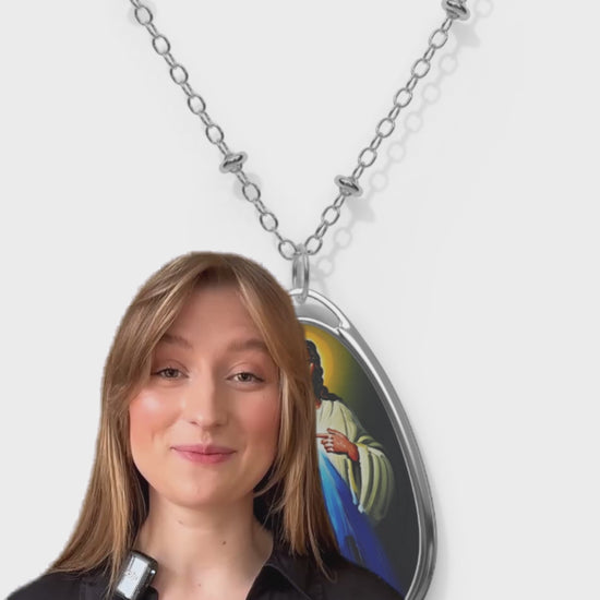 This oval (ellipse) pendant necklace carries quiet reverence and everyday wearability. The Divine Mercy inspired image shines in vibrant colors on a glossy zinc surface, luminous against your skin and built to stay brilliant over years of daily wear. Crafted from durable zinc-alloy, the pendant and chain feel substantial yet remain light enough to wear from morning prayer to evening rest. The gentle teardrop silhouette frames the artwork beautifully, perfect for layering or wearing alone, while the secure lobster-clasp closure keeps it safely in place. Slip it into daily routines—prayer corners, morning walks, or tucked beneath a sweater—and let it add a subtle, meaningful note to how you move through the day.