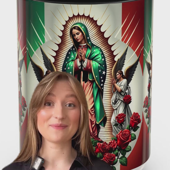 Catholic Coffee Mug, 15oz Ceramic Cup, Our Lady of Guadalupe Inspired