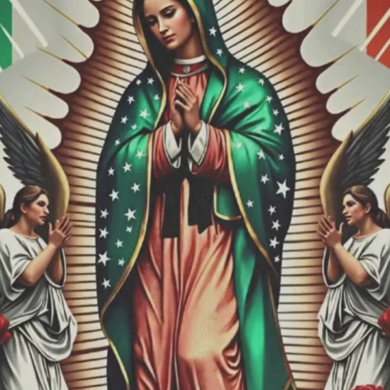 Rectangular shape with a one-sided Virgin of Guadalupe print